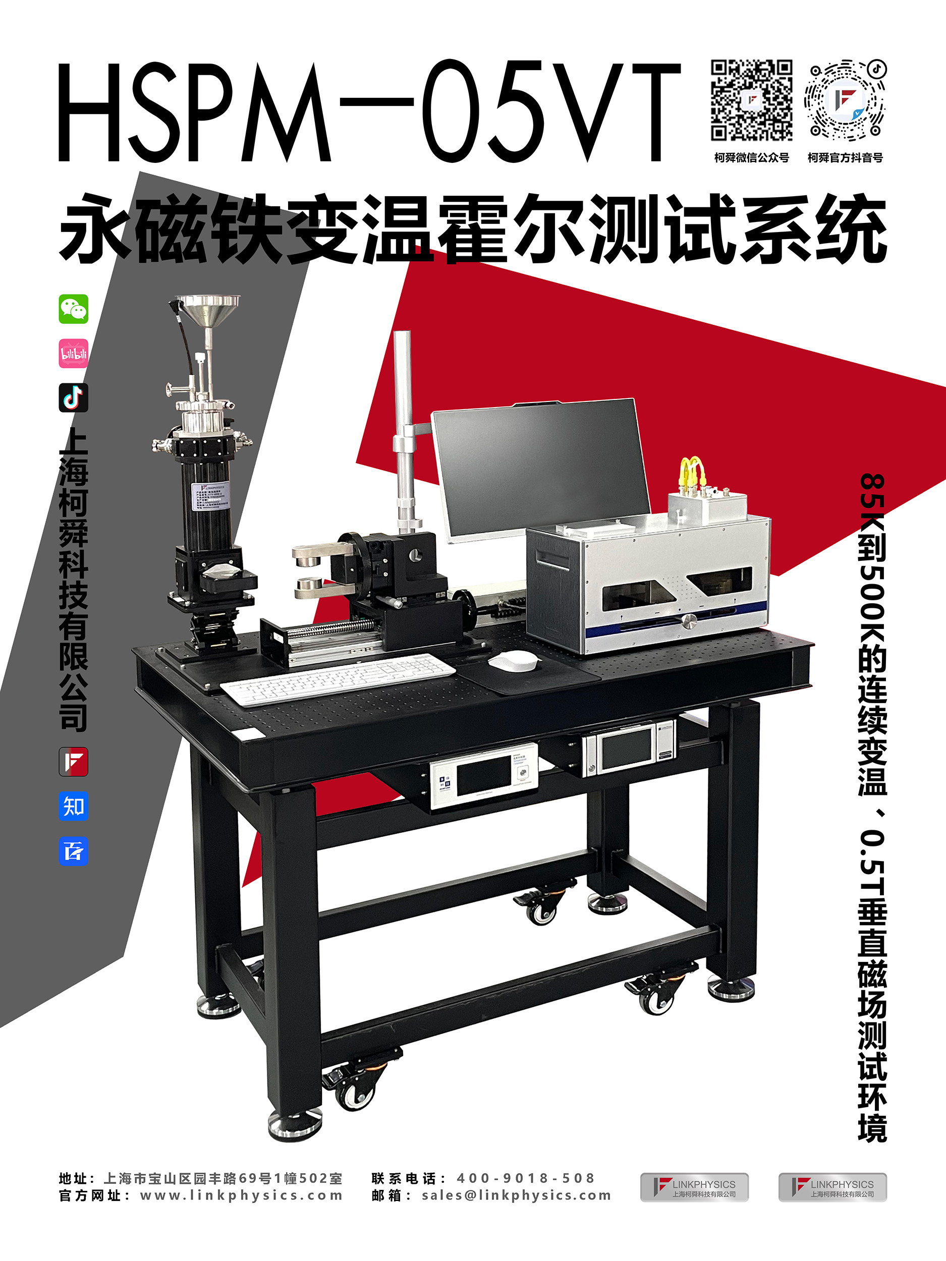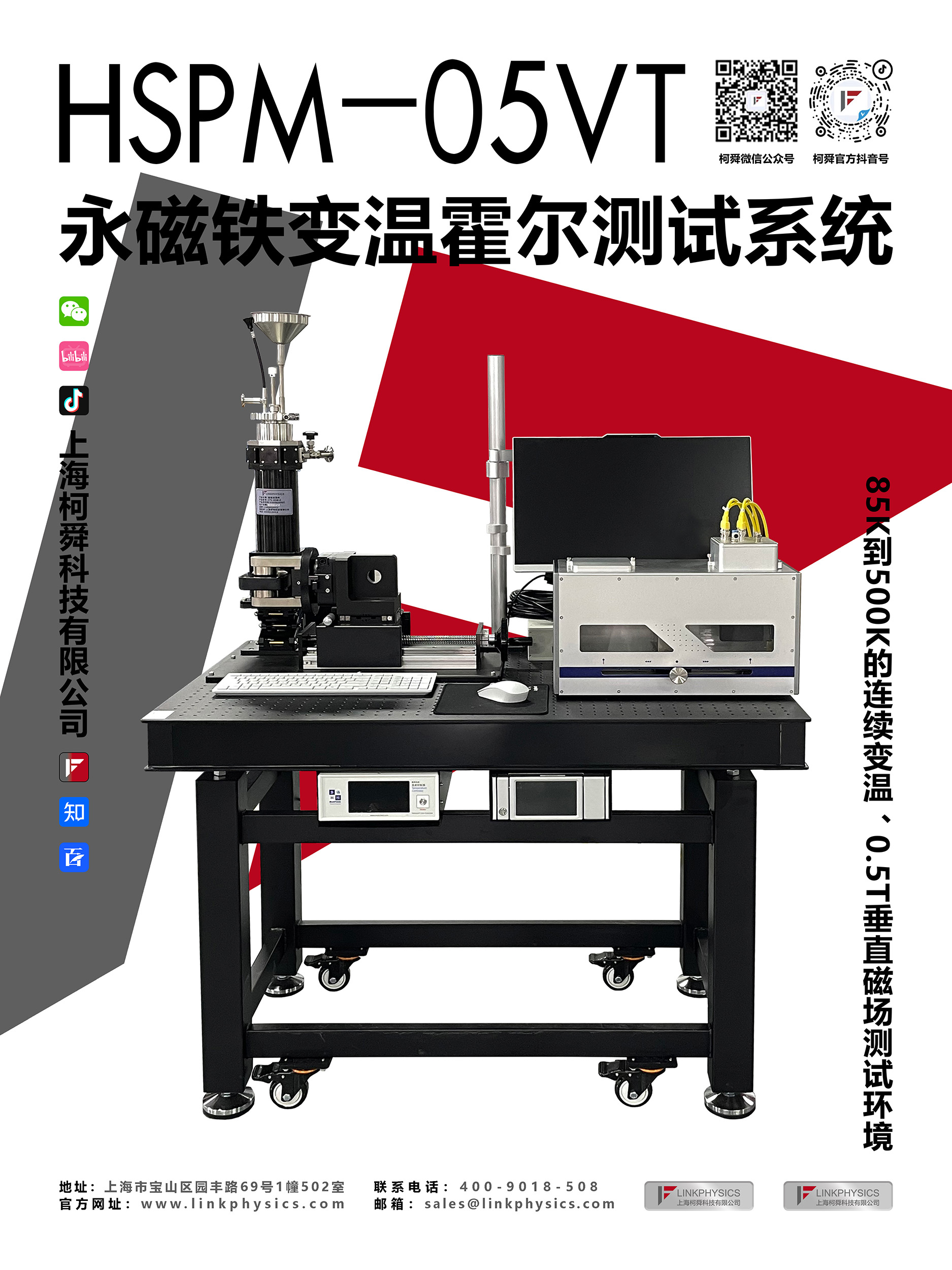 HSPM-05VT变温霍尔测试系统由霍尔测试仪、液氮存储式恒温器以及永磁铁运动机构组成,可以给样品提供一个85K到500K的连续变温、0.5T垂直磁场测试环境,可以测试变温下的霍尔参数,为既需要低温又需要高温的科学实验提供了极大的便利。这是一款性价比极高,也是使用用户较多的霍尔测试系统,可以实现较大范围的温度测试,也可配其它电表,作为一个纯粹的温度环境和磁环境用于其它测试。